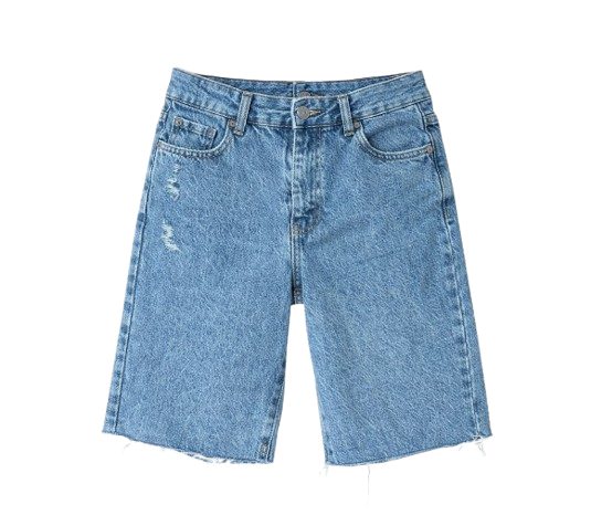 Bermuda de calce recto, confeccionada en denim. Presenta tiro medio, cierre frontal con botón y cinco bolsillos funcionales. Largo a la rodilla con terminación desflecada, que aporta un estilo relajado y moderno. Una prenda versátil, cómoda y fácil de combinar, ideal para looks urbanos y de uso diario.