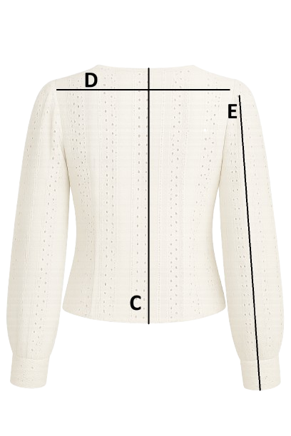 LAS MEDIDAS CORRESPONDEN A LAS PRENDAS APOYADAS EN UN PLANO, NO SOBRE EL CUERPO. ESTAN EXPRESADAS EN CM Y SON APROXIMADAS