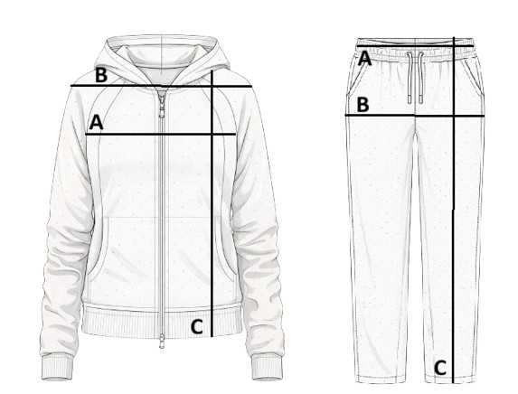 Las medidas corresponden a las prendas apoyadas en un plano, no sobre el cuerpo. Están expresadas en cm y son aproximadas.