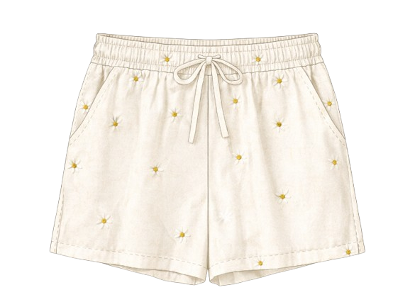 Short confeccionado en lino, liviano y fresco, ideal para los días de calor. Presenta margaritas bordadas que aportan un detalle delicado y femenino al diseño. Cuenta con forro interno, bolsillos laterales y lazos ajustables, además de cintura elástica para un calce cómodo y relajado, perfecto para el uso diario!!!
