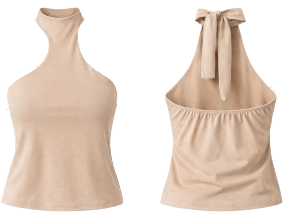 Top confeccionado en algodón con lycra spandex, con cuello alto tipo halter y lazos regulables que permiten ajustar el escote. Está confeccionado con 60% de Algodón y 40% de Spandex