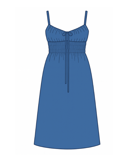 Nuestro Vestido Helena con breteles finos y detalle de frunce con lazo en el escote logra un toque delicado y súper favorecedor.